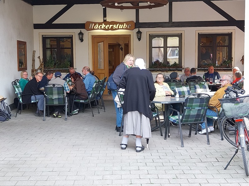 Beeindruckt von soviel Kunstreichtum meldete sich nach der einstündigen Führung allmählich aber doch der Magen, und so kamen die Ausflügler gegen Mittag im Weinort Markelsheim an, wo im Landgasthof Taubertal schon die Tische gedeckt waren.
